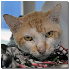 - 8 years old, orange tabby and white, neutered