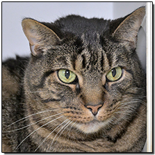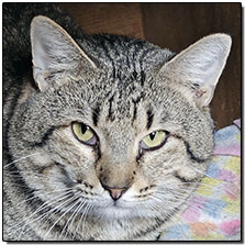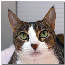 - 6 years old, brown tabby and white, spayed, polydactyl (has thumbs)